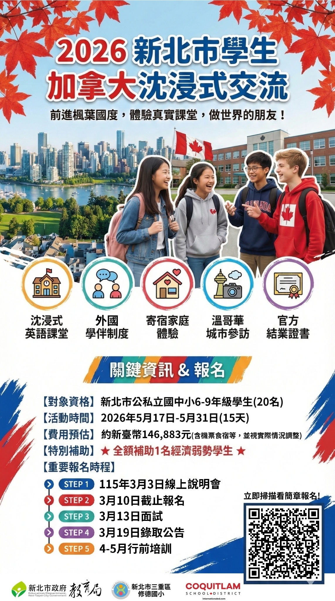 「2026新北市學生赴加拿大高貴林學區沉浸式語言及文化交流計畫」(資料組)
