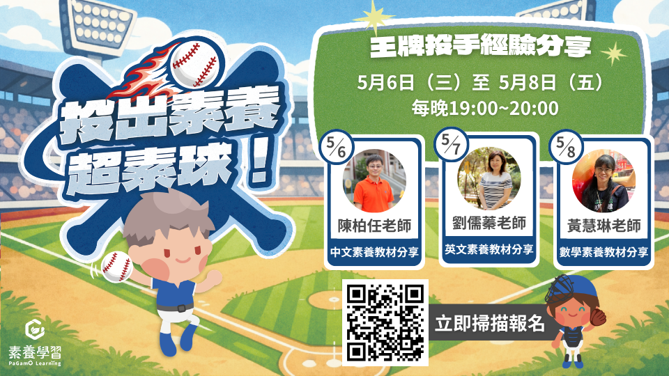 【轉知】PaGamO 素養學習團隊辦理「投出素養超素球!王牌投手教學經驗大公開!」線上研習活動。(教學組)
